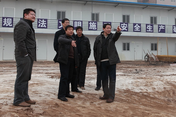 肖董事長先后到富平實驗中學(xué)、富平縣公共服務(wù)中心應(yīng)急避難工程項目及富平縣狀元府邸住宅小區(qū)建設(shè)項目工地進行了視察,聽取各個項目部負責(zé)人項目進展情況匯報,劉晏總會計師也介紹了各個項目基本情況,肖董事長在總結(jié)時,對各個項目的整體工作給予了肯定,并指出了項目施工現(xiàn)場上存在的個別安全隱患問題要注意加強防范,同時也對施工現(xiàn)場加強形象標示工作提出了要求。