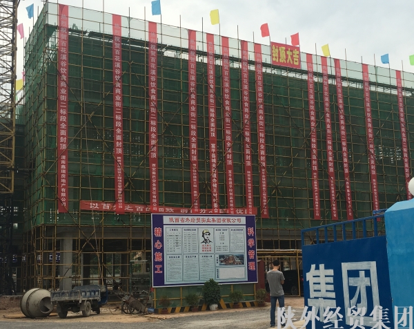 秋高氣爽,在這金色的收獲季節(jié)里,集團公司下屬建設(shè)三公司承建富平縣百花溪谷飲食商業(yè)街建設(shè)項目一期Ⅱ標(biāo)段項目封頂。