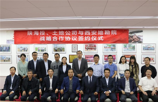 2018年9月28日周五上午10:00,陜西外經貿土地整理開發(fā)工程有限公司、陜西海外投資發(fā)展有限公司與西安地質礦產勘查開發(fā)院有限公司,三方戰(zhàn)略合作簽約儀式在陜西外經貿土地整理開發(fā)工程有限公司會議室隆重舉行,陜西外經貿土地整理開發(fā)工程有限公司及陜西海外投資發(fā)展有限公司董事長丁永忠、土地公司總經理唐李、陜海投公司總經理劉軍、西安地質礦產勘查開發(fā)院院長王戰(zhàn)社、副院長鄒文良及三方相關部門負責人共30人共同見證并進行了本次簽約儀式。