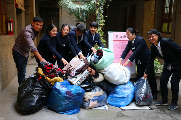 北方的天氣日漸變冷,許多孤寡老人家庭困難,無力置辦冬衣,總辦黨支部了解到這個情況以后,便參加了由火鍋聯(lián)盟發(fā)起組織,陜西眾泰慈善基金會協(xié)助的“2018商洛山區(qū)暖冬行動”公益活動??傓k黨支部對此次活動高度重視,認真籌劃,積極準(zhǔn)備,在總辦黨支部辦公室設(shè)點開展募捐活動。倡議書下發(fā)后,支部成員積極響應(yīng)、熱情參與,紛紛送來自己的羽絨服、棉衣、棉褲、圍巾、帽子等御寒衣物。在此次活動中,其他支部及干部職工也積極踴躍進行捐贈,以實際行動獻出愛心,捐贈的衣物共計200余件。一件件衣物送出一份份溫暖,一顆顆愛心帶來一份份感動,大家排隊捐獻衣物的場景也成為飯店一道靚麗的風(fēng)景線。10月27日至10月28日兩天內(nèi),總辦黨支部書記陳亞琴和離退休黨支部書記張省民和其他愛心單位協(xié)力裝載捐贈物品,一輛輛裝滿愛心衣物的轎車駛向商南地區(qū)家庭窘困的老人。隨后,陜西眾泰慈善基金會為表示感謝,向飯店授予“情系環(huán)境保護 彰顯企業(yè)大愛”的錦旗。